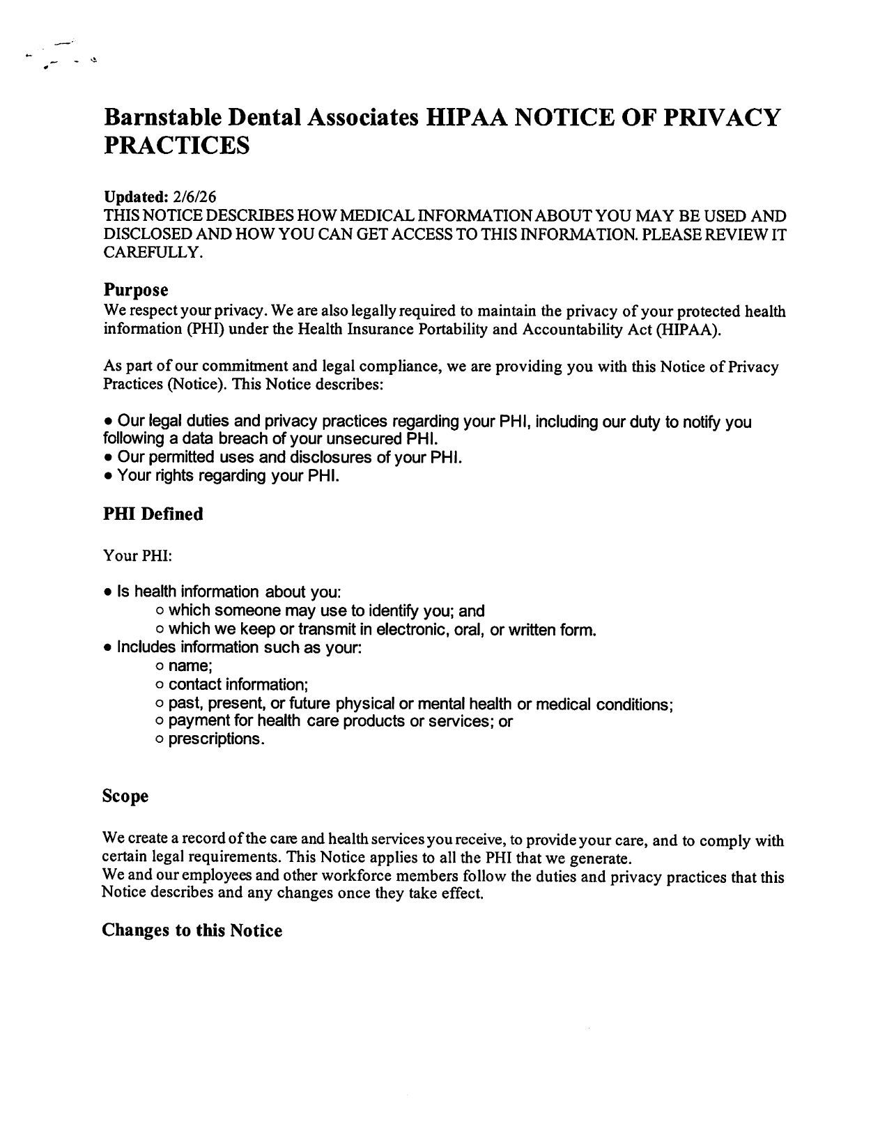 this Notice describes and any changes once they take effect.